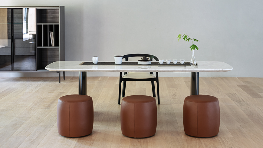 一款从DRUM系列茶几延伸出来的小圆凳。造型圆润温和,似君子般谦逊淡泊,又如孩童般俏皮可爱,可搭配不同风格的空间场景。