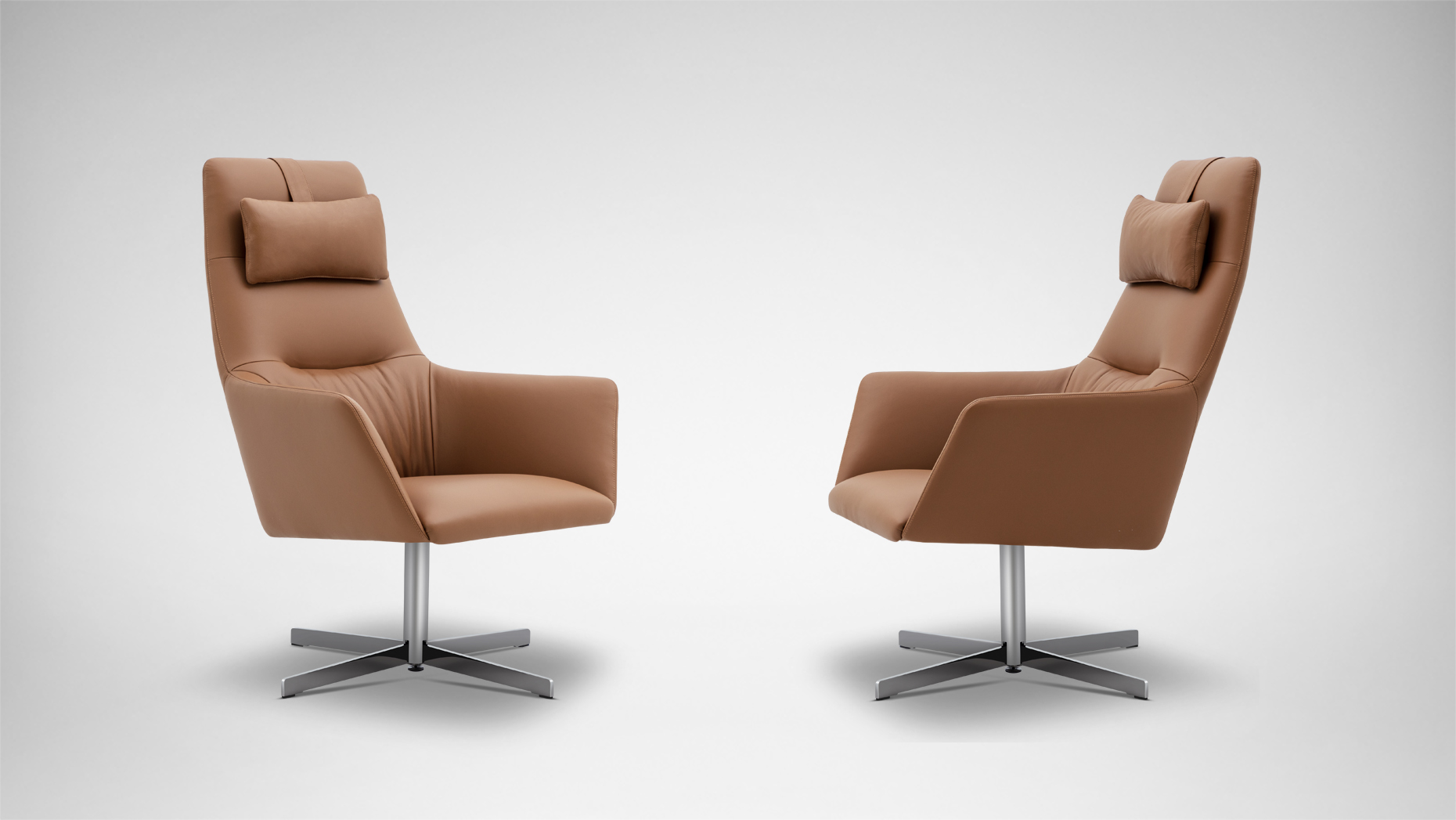 宽阔的造型给人更多自由空间,既有木腿托起的稳重,也有金属腿旋转带来的愉悦。